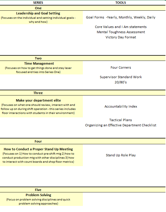 Many times, people are promoted into the supervisory ranks from hourly general labor positions. We choose people that have an excellent attendance record, are personable and have a great attitude. We tell ourselves and the supervisor candidate that we’ll spend time with them and develop them into outstanding leaders.Then some months later we find that we did not have the time to mentor and teach them, and we are wondering how the person we thought would be successful is struggling in their new position. Or, we hire supervisors from another company and, although they interviewed well, they bring with them troubles that we did not anticipate or behaviors we do not want. Either route we end up with, supervisors are charged with deploying their leaderships Vision and Mission – but they don’t know how to make that Vision a reality. They are not equipped with the tools to meet/exceed departmental targets and they don’t have the interpersonal skills to be a successful leader capable of developing leaders themselves.